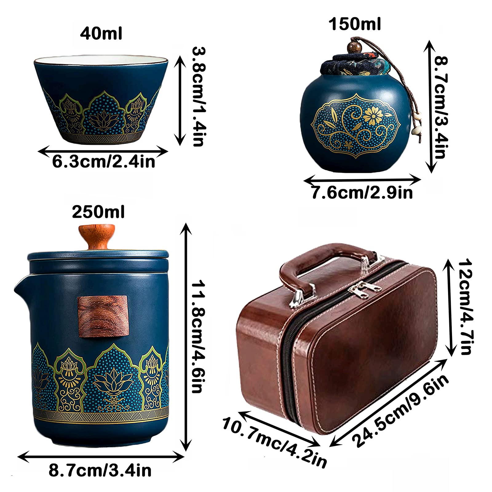 Echt edel dieses Teeset! Perfekt für alle Tee-Liebhaber die unterwegs nicht auf Qualität verzichten wollen. Aus feinem Porzellan und Kunstleder, hält den Tee lange warm. Das Set includes 1 Kanne und 2 Tassen - ideal für dich und einen Begleiter. Super kompakt (8,4x8,4x4,4cm) passt in jede Tasche. Das traditionelle chinesische Design ist einfach nur schön. Ob alleine oder zu zweit, damit wird jede Tee-Pause zum Erlebnis! Material: Porzellan + Kunstleder • Set: 1 Kanne + 2 Tassen • Größe: 8,4x8,4x4,4cm • Farbe: Traditionell chinesisch • Für: Unterwegs, Reisen, Büro • Ideal für: Grüntee, Oolong, alle Teesorten • Macht jeden Tag etwas besonderer!