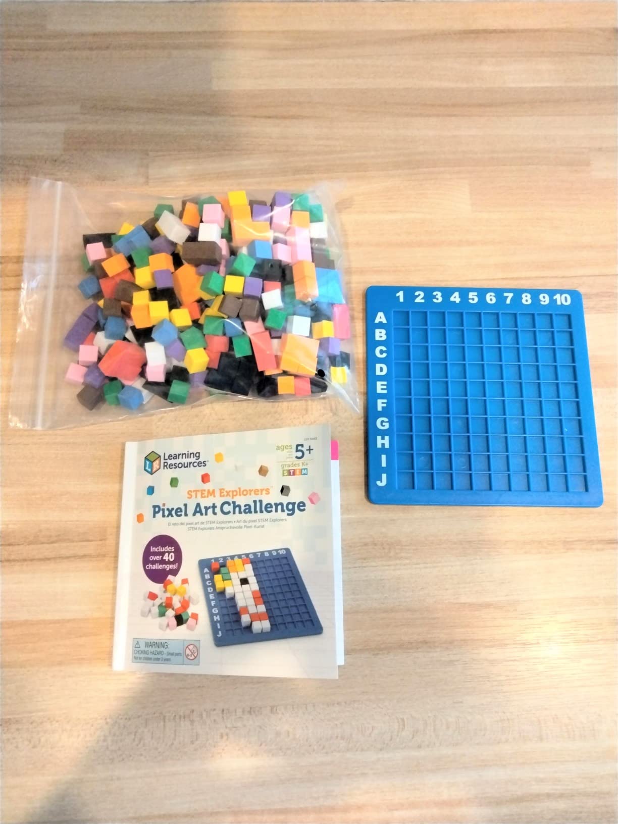 Spielend lernen war noch nie so cool! Dieses STEM Explorers Set mit 402 Teilen bringt Kindern ab 5 Jahren MINT-Themen näher. Über 400 bunte Pixel-Würfel, 10x10 Brett und Aufgabenkarten. Erstellt 2D-Kunst wie bei alten Videospielen. Fördert mathematisches Denken, Programmiergrundlagen und Kreativität. 40+ computerfreie Aufgaben - von Koordinaten lesen bis Algorithmen. Trainiert Feinmotorik und logisches Denken. Perfekt für Zuhause oder Kindergarten. Macht aus MINT MINT mit Kunst! Dein Kind wird begeistert sein - lernen war noch nie so unterhaltsam. Achtung: Kleinteile, nicht unter 3 Jahren!
