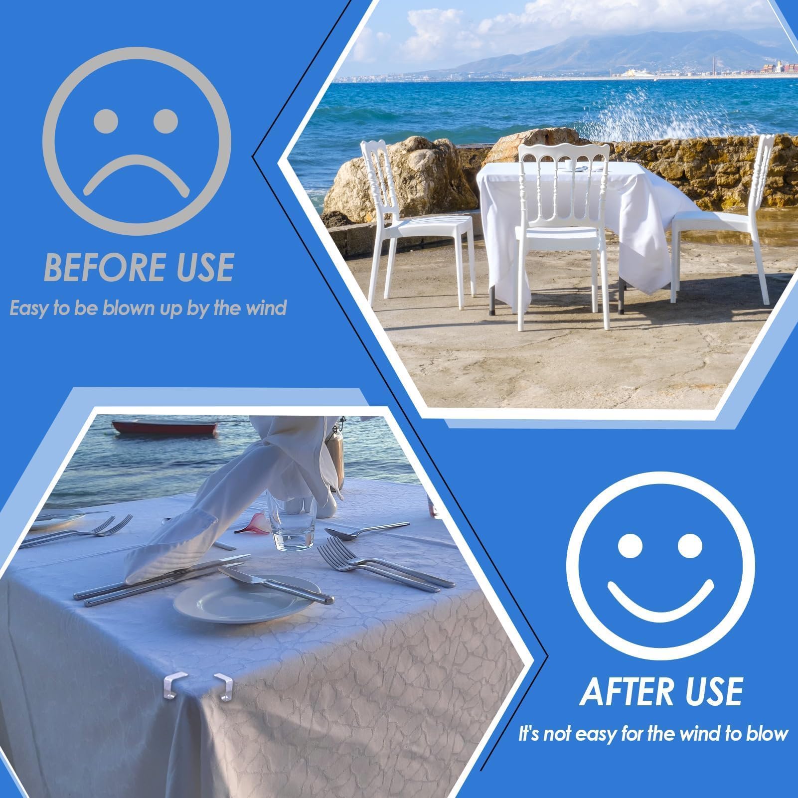 Endlich keine verrutschten Tischdecken mehr! Diese 12 transparenten Klammern aus robustem ABS-Kunststoff halten deine Tischdecken sicher an Ort und Stelle - selbst bei windigem Wetter im Freien. Perfekt für Tischplatten von 3,5 bis 5cm Dicke.