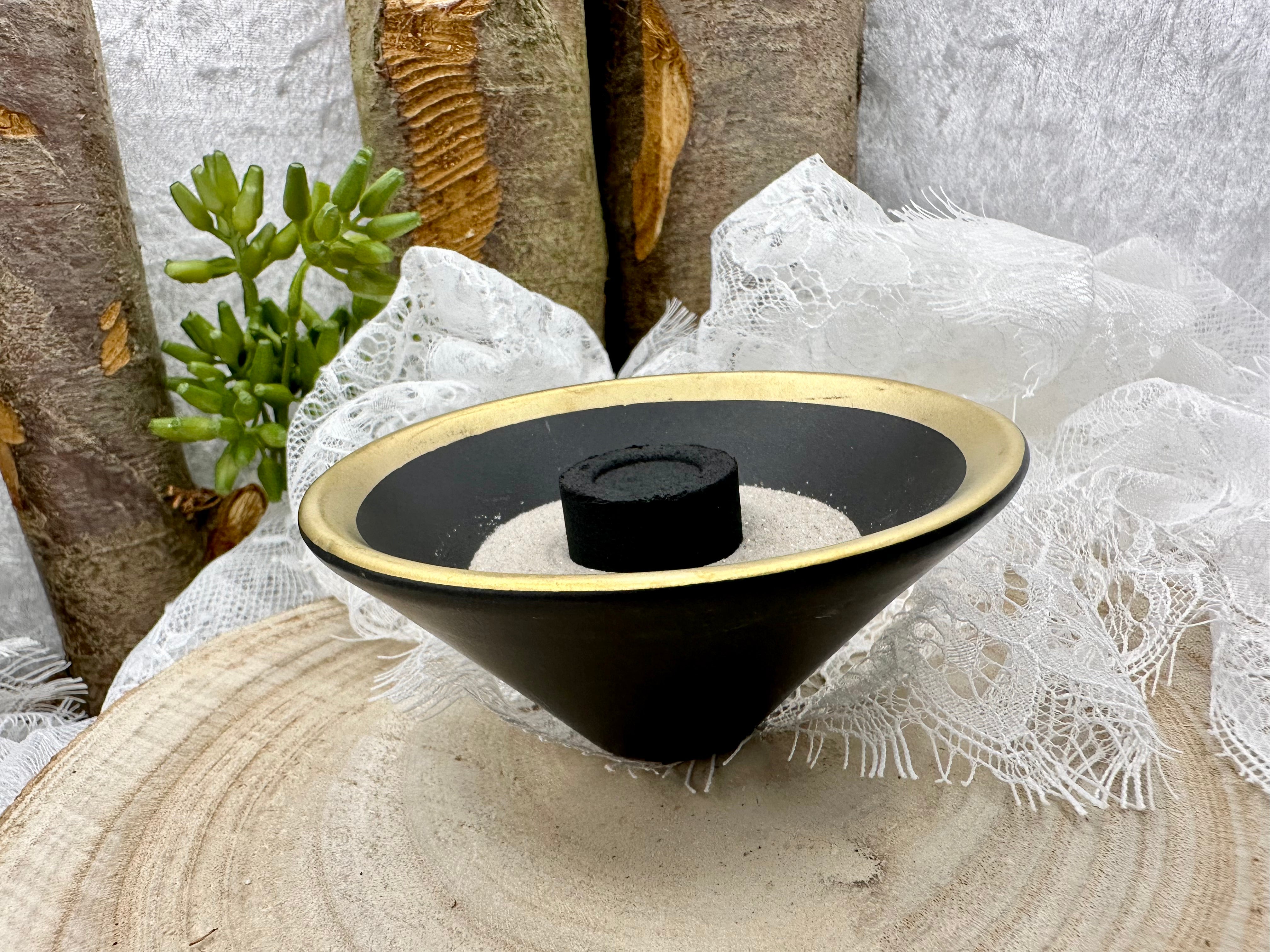 Wow, diese buddhistische Räucherschale ist einfach wunderschön! Aus reinem Kupfer gefertigt und mit einem eleganten goldenen Finish. Perfekt für deine Meditationen, Rituale oder einfach zur Entspannung. Die Schale hat einen Durchmesser von 8,4cm und ist 4,2cm hoch - also genau die richtige Größe für Räucherstäbchen, Räucherkegel oder lose Kräuter. Super vielseitig einsetzbar: Ob auf dem Altar, für spirituelle Zeremonien oder einfach als dekoratives Stück in deinem Zuhause. Achtung: Beim Verbrennen von Räucherwerk kann sich die Kupferwand schwarz verfärben - das ist ganz normal und gehört dazu! Ideal für alle, die Ruhe und Entspannung suchen oder ihre buddhistische Praxis vertiefen wollen. Macht sich auch super als Geschenk für spirituell interessierte Menschen! Einfach das Räucherwerk entzünden, zur Ruhe kommen und die besondere Atmosphäre genießen. Diese Schale bringt eine ganz besondere Energie in deinen Raum - probier's aus!