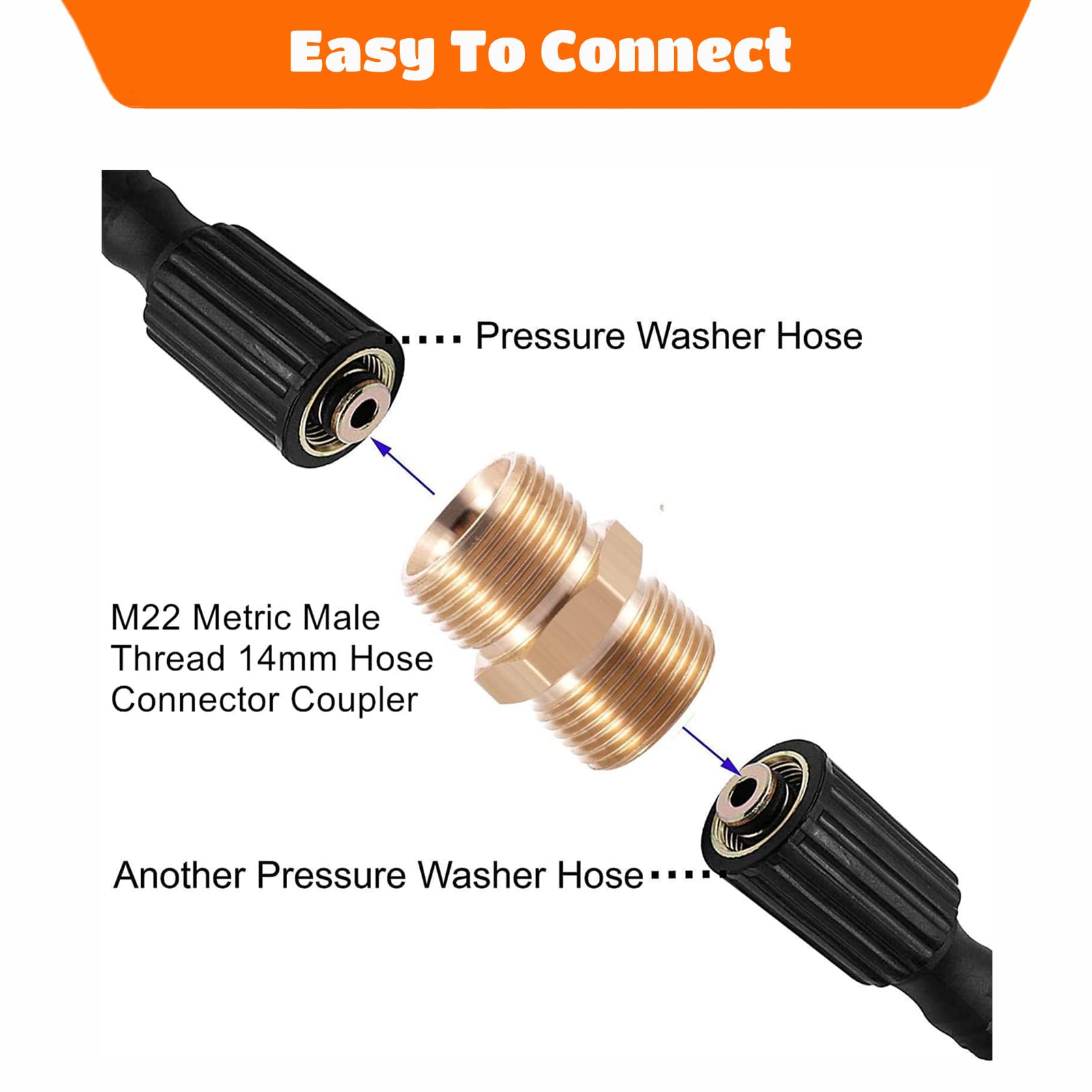 Messing M22 Adapter - Hochdruck Kupplung 14mm Für Waschmaschine & Reiniger