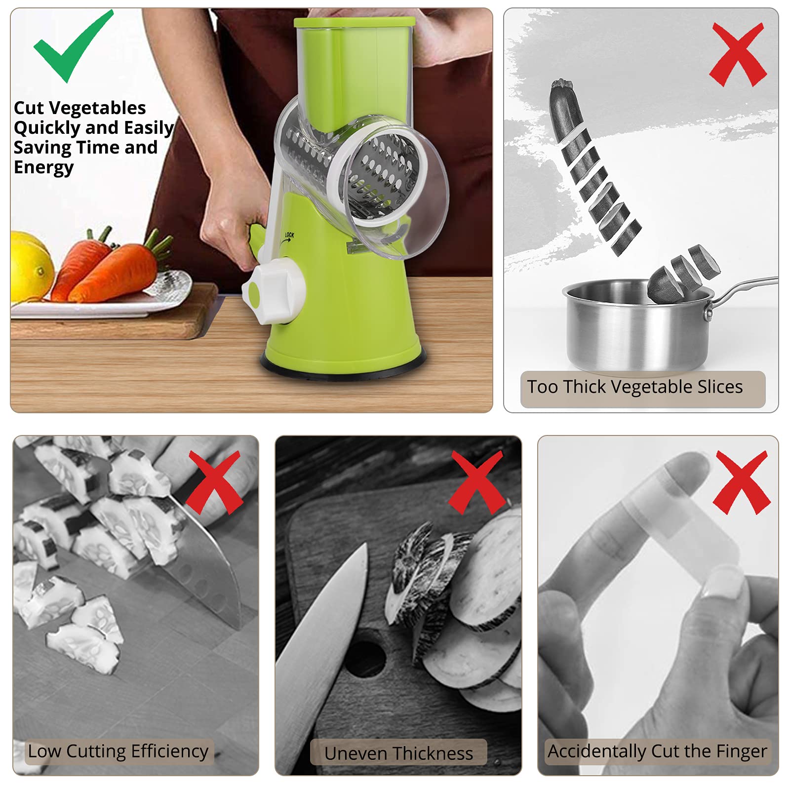 Wow, diese Käsereibe mit Kurbel macht das Kochen so viel einfacher! Einfach drehen und schon hast du perfekt geriebenen Käse, Gemüse oder Nüsse. Mit 3 verschiedenen Trommelklingen aus rostfreiem Stahl für verschiedene Schneidearten - raspeln, schneiden oder mahlen. Der starke Saugnapf hält die Reibe sicher auf der Arbeitsfläche fest. Aus lebensmittelechtem BPA-freiem ABS-Material gefertigt - absolut sicher für deine Lebensmittel. Der praktische Griff schützt deine Hände vor den Klingen. Perfekt für Parmesan, Karotten, Gurken, Nüsse und vieles mehr. Einfach zu reinigen - vollständig zerlegbar und spülmaschinenfest. Mach deine Küchenarbeit schneller und sicherer - dreh mal dran!