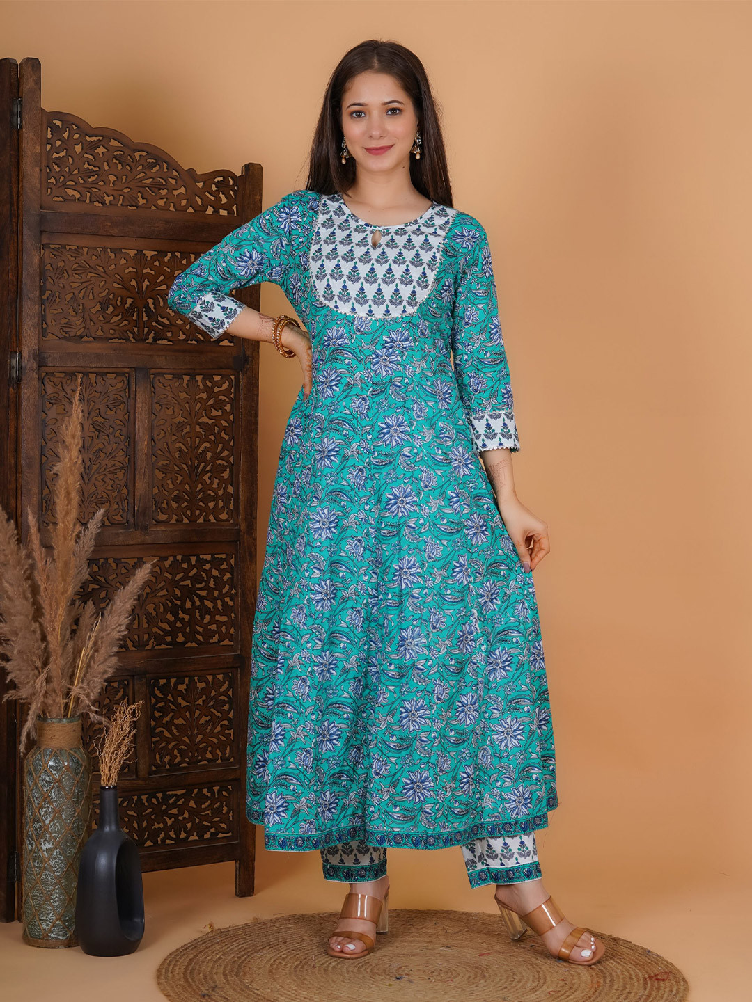 MEERA FAB Damen Kurta Mit Palazzo - Übergrößen Baumwolle Outfit Set