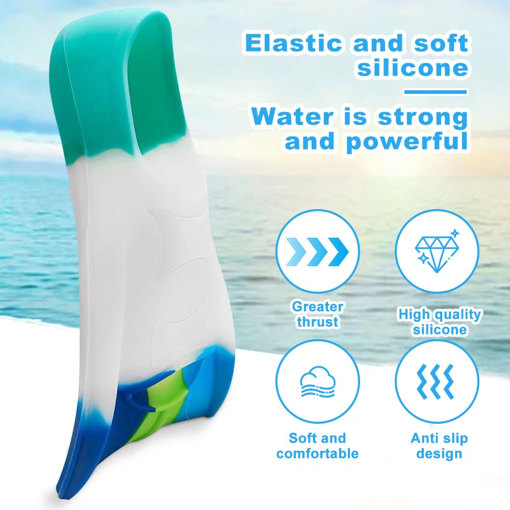 Macht eure Kinder zu kleinen Wasserratten mit diesen superweichen Silikon-Schwimmflossen! Speziell für Kinder entwickelt, sind sie kurz und handlich, aber dennoch effektiv für das Schwimmtraining. Die geschlossene Ferse verhindert ein Abrutschen und gibt sicheren Halt. Hergestellt aus hautfreundlichem, lebensmittelechtem Silikon, das sich perfekt an den Kinderfuß anpasst und keine Druckstellen verursacht. Das intelligente Entwässerungsdesign mit Drainage-Öffnungen verhindert Wasseransammlungen und reduziert den Spritzwiderstand. Die bunten Farben in Grün und Blau machen Spaß und wecken die Begeisterung fürs Wasser. Perfekt für Schwimmanfänger, um die Beinkraft zu stärken und schneller voranzukommen. Ob im Hallenbad, im Meer oder See - diese Flinsen sind ideal für Schnorcheln, Schwimmtraining und Wasserspaß. Einfach anzuziehen, leicht zu reinigen und ein tolles Geschenk für kleine Wasserfreunde!