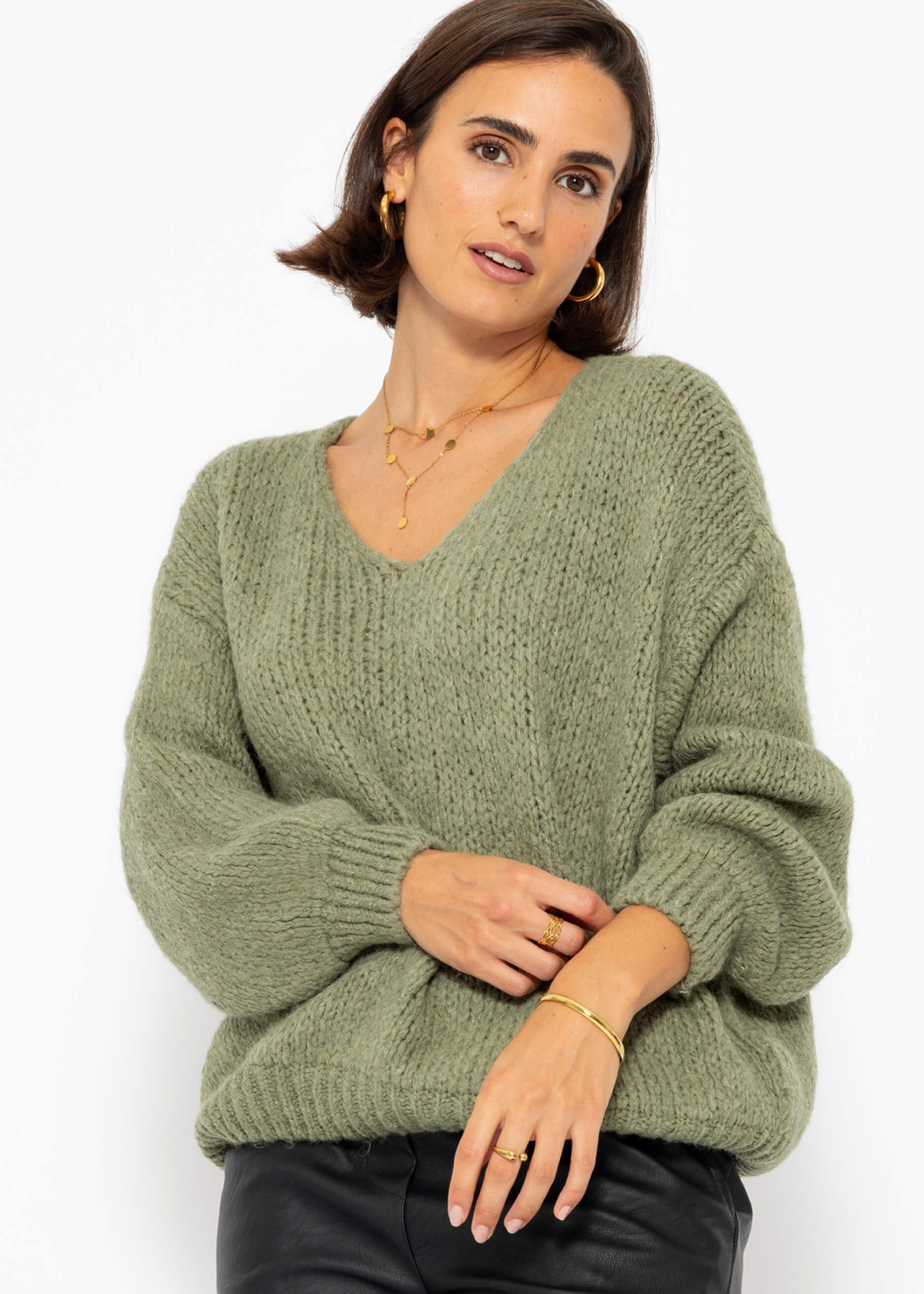Damen Pullover Weste Kurzarm - Grobstrick V-Ausschnitt Lässig