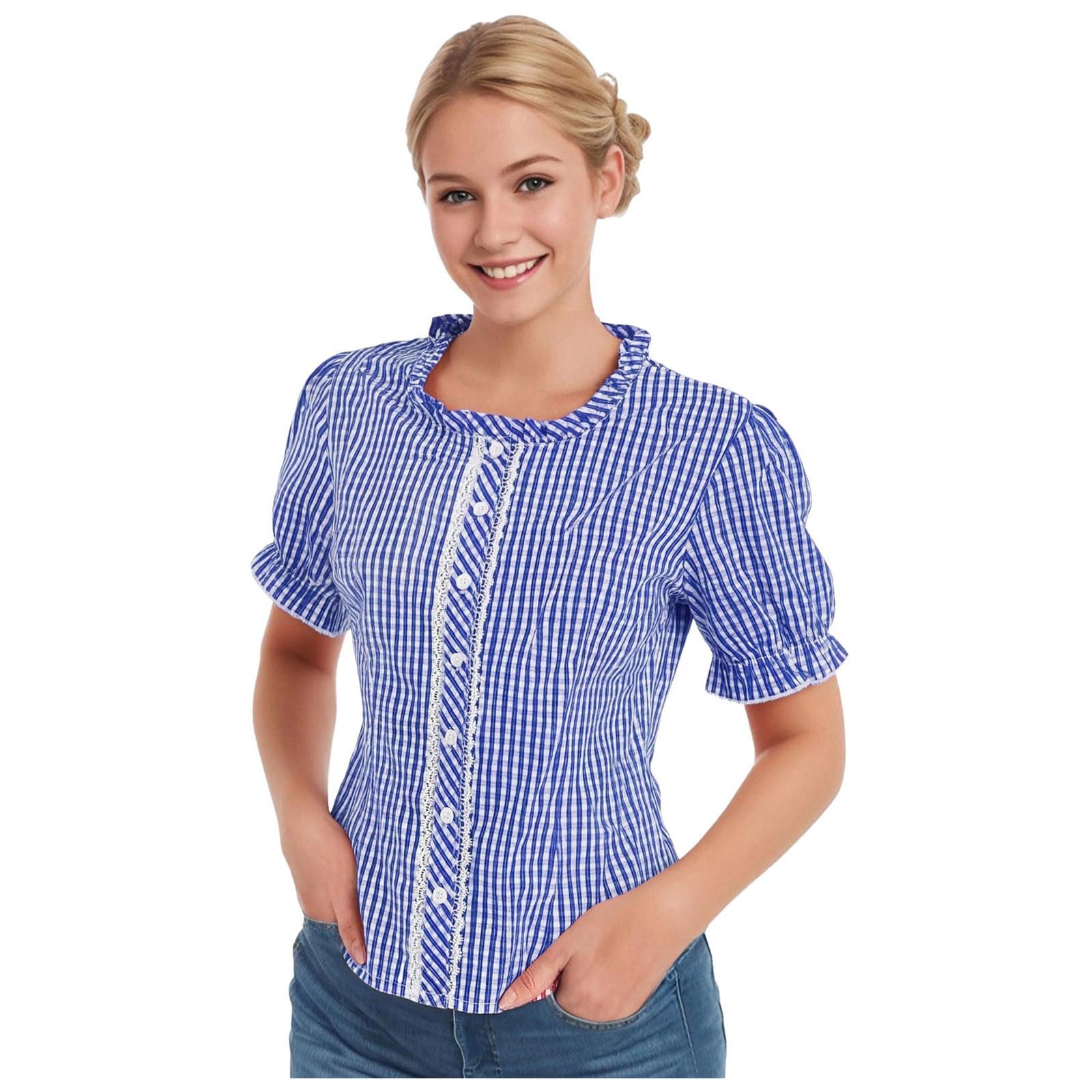 Trachtenbluse Damen Kurzarm - Modernes Bayrisches Trachtenhemd Für Oktoberfest
