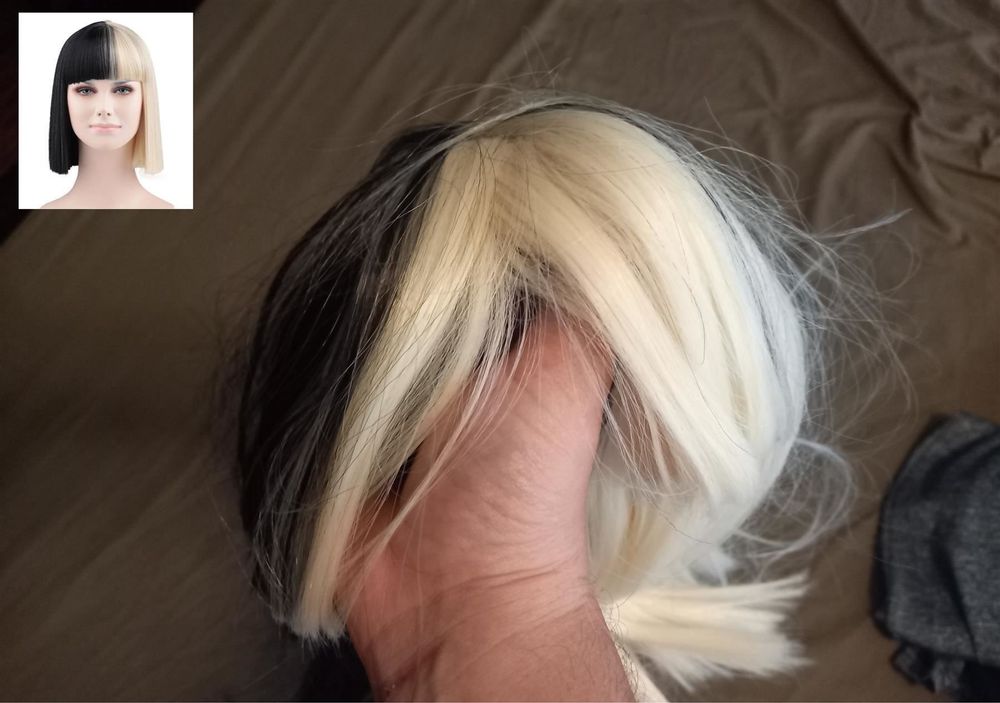 Wow, diese zweifarbige Perücke ist einfach der Hammer für dein nächstes Kostüm! Das coole Design - eine Hälfte schwarz, eine Hälfte blond - sorgt garantiert für Aufsehen. Aus 100% hitzebeständigen Synthetik-Fasern, die sich anfühlen wie echtes Haar. Super weich und natürlich aussehend! Mit ca. 30,5cm Länge ist sie perfekt für einen kurzen, stylischen Look. Die handgefertigte Verarbeitung und die unsichtbare Perückenkappe machen sie besonders hochwertig. Das atmungsaktive Rosennetz und die verstellbaren Riemen innen sorgen für perfekten Sitz (53,3-57,1cm Kopfumfang). Ideal für Cosplay, Halloween, Partys oder einfach mal für einen neuen Look im Alltag. Einfach aufsetzen und sofort verwandelt sein! Der längere Pony kann nach Belieben gekürzt werden. Komplett mit Kamm innen für extra Halt - dein neues Lieblings-Accessoire für jeden Anlass!