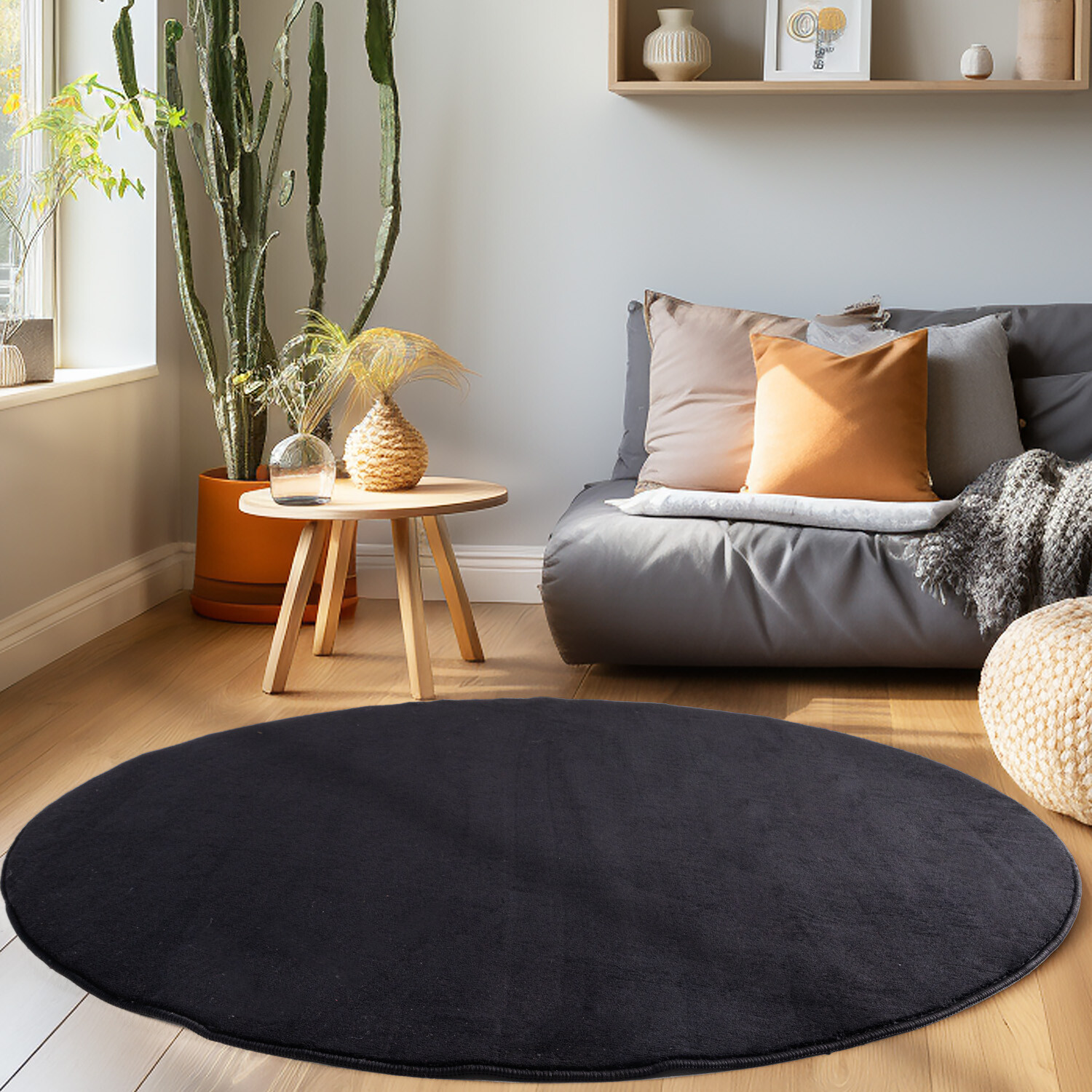 Runder Teppich 90cm Wildblumen - Kurzflor Teppich Für Wohnzimmer & Schlafzimmer