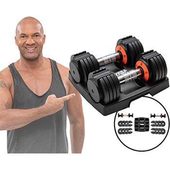 Dein komplettes Home-Gym in einer Hantel! Die TREXO MULTICOLOR verstellbare Kurzhantel mit maximal 11,5 kg Gewicht ist der vielseitigste Trainingspartner für zu Hause. Aus robustem Stahl gefertigt, überzeugt sie durch ihre Langlebigkeit und Widerstandsfähigkeit. Die gummierten Griffe und Gewichte schützen nicht nur deine Böden, sondern reduzieren auch die Trainingsgeräusche. Mit fünf praktischen Gewichtseinstellungen (6 kg, 11 kg, 15,5 kg, 20 kg und 24,5 kg) passt du die Intensität blitzschnell an - einfach den Knopf im Griff drehen! Perfekt für Bankdrücken, Kniebeugen, Kreuzheben, Rudern und unzählige andere Übungen. Der stabile Ständer sorgt für sicheren Stand und einfache Gewichtswechsel. Ob du Anfänger oder Profi bist - diese Hantel wächst mit deinen Fitnesszielen mit. Das moderne Multicolor-Design sieht nicht nur gut aus, sondern motiviert auch zum Training. Einfach aufbauen und sofort loslegen - deine Muskeln werden's dir danken!
