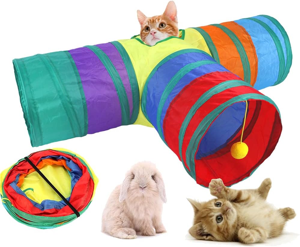 Faltbarer Spieltunnel Für Kleintiere - Kuschelige Höhle Für Hamster, Kaninchen & Frettchen | Regenbogen Design