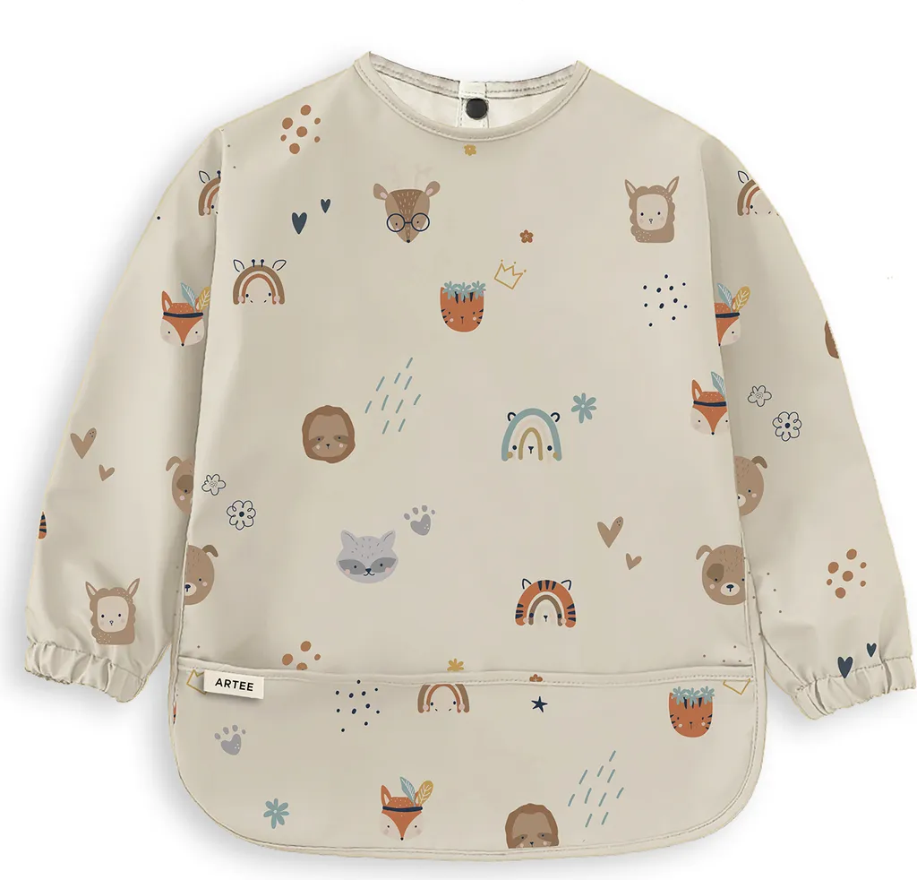 LÄSSIG Baby Ärmellätzchen Wasserdicht - Langarm Lätzchen Mit Wildlife Design Für Kleinkinder