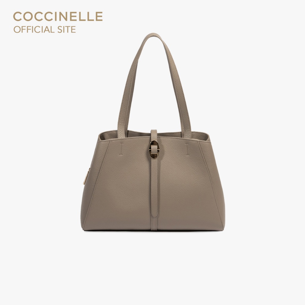Coccinelle C-Easy Shopper L Warm Taupe - Rindsleder Handtasche Mit Utensilientasche