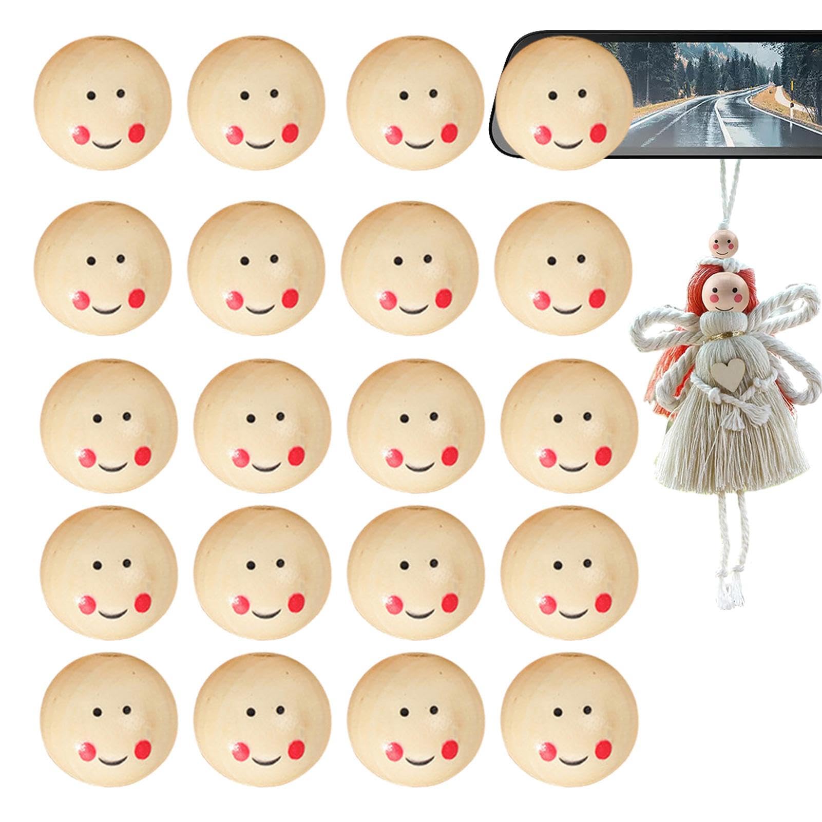 40 Holzkugeln Mit Gesichtern - Lächelnde Holzperlen Für Makramee & Basteln