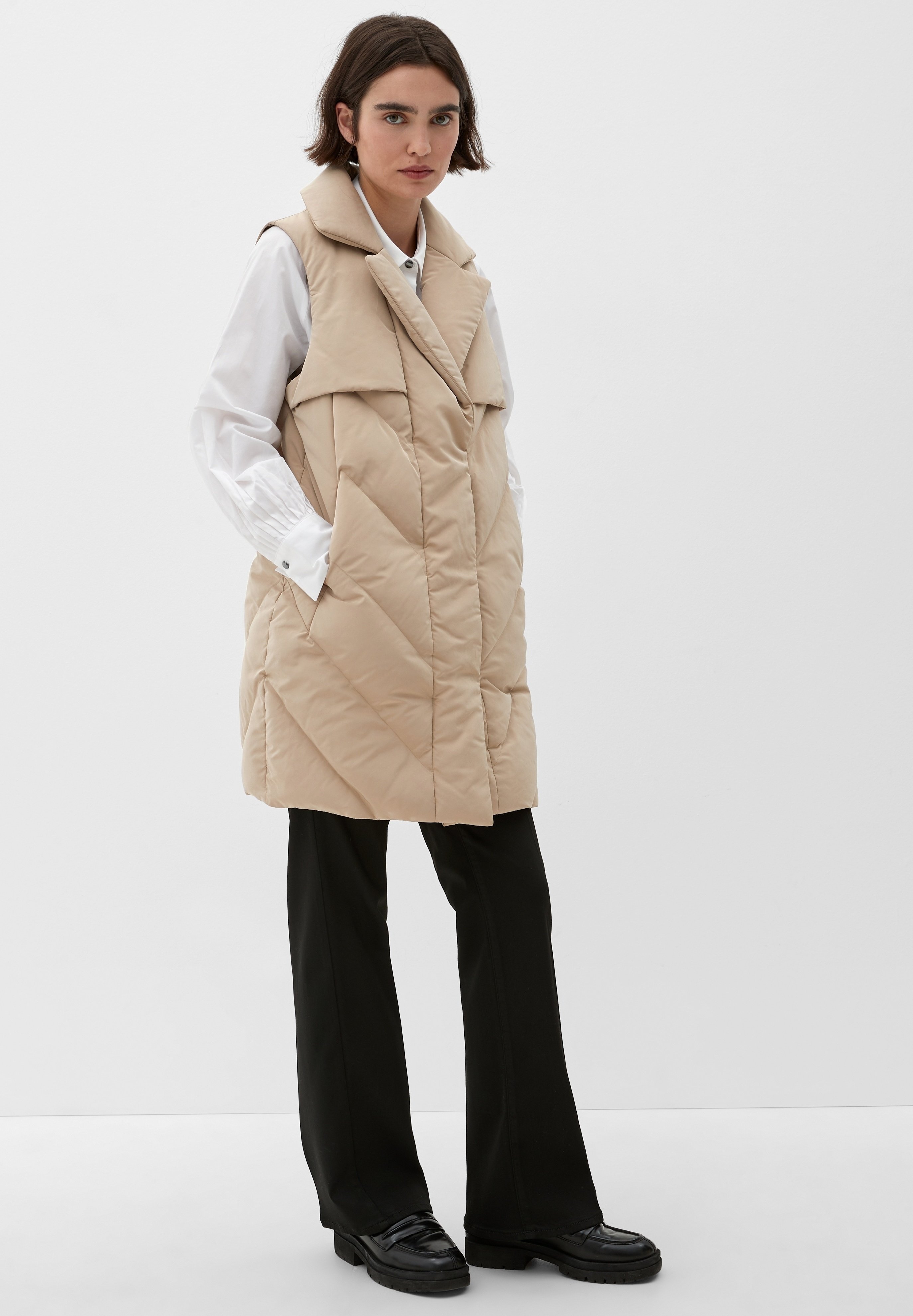 Suchst du den perfekten Begleiter für Business-Meetings oder besondere Anlässe? Diese s.Oliver Weste ist genau das Richtige! Die taillierte Slim-Fit-Passform betont deine Figur und die feinen Nadelstreifen sehen einfach klasse aus.\n\nMit V-Ausschnitt und Leistentaschen ist sie sowohl stylisch als auch praktisch. Das leichte Futter sorgt für angenehmen Tragekomfort, und die strukturierte Optik gibt ihr das gewisse Etwas.\n\nOb zum Blazer, zu Hemd und Hose oder sogar locker über einem T-Shirt - diese Weste macht immer eine gute Figur. Der Polyester-Mix fällt super und knittert kaum.\n\nFür alle, die Wert auf einen souveränen Auftritt legen - ob im Büro, auf der Party oder beim Geschäftstermin. Mit dieser Weste bist du immer perfekt angezogen und fühlst dich dabei pudelwohl!