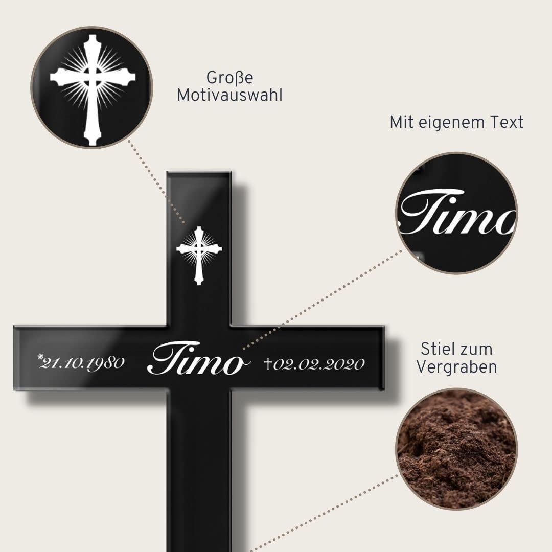 LAUBLUST Personalisiertes Acryl-Grabkreuz Mit Gravur - Grabschmuck In 2 Größen
