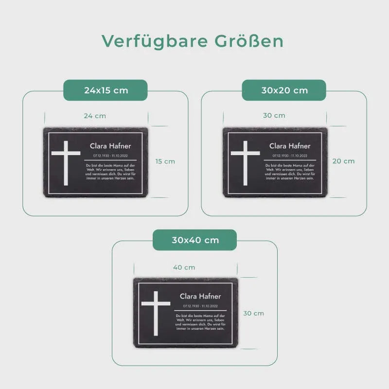 Möchtest du die Erinnerung an einen geliebten Menschen bewahren? Dieses personalisierte Acryl-Grabkreuz von LAUBLUST lässt sich mit Namen, Datum, Foto und persönlichen Wünschen gravieren. Erhältlich in zwei Größen (ca. 30x20 cm oder 40x25 cm), wetterfest und farbbeständig durch UV-Druck. Einfach in die Erde stecken und so die Grabstätte individuell und würdevoll gestalten. Hergestellt in Deutschland – ein bleibendes Andenken, das deine Liebe und Verbundenheit ausdrückt.