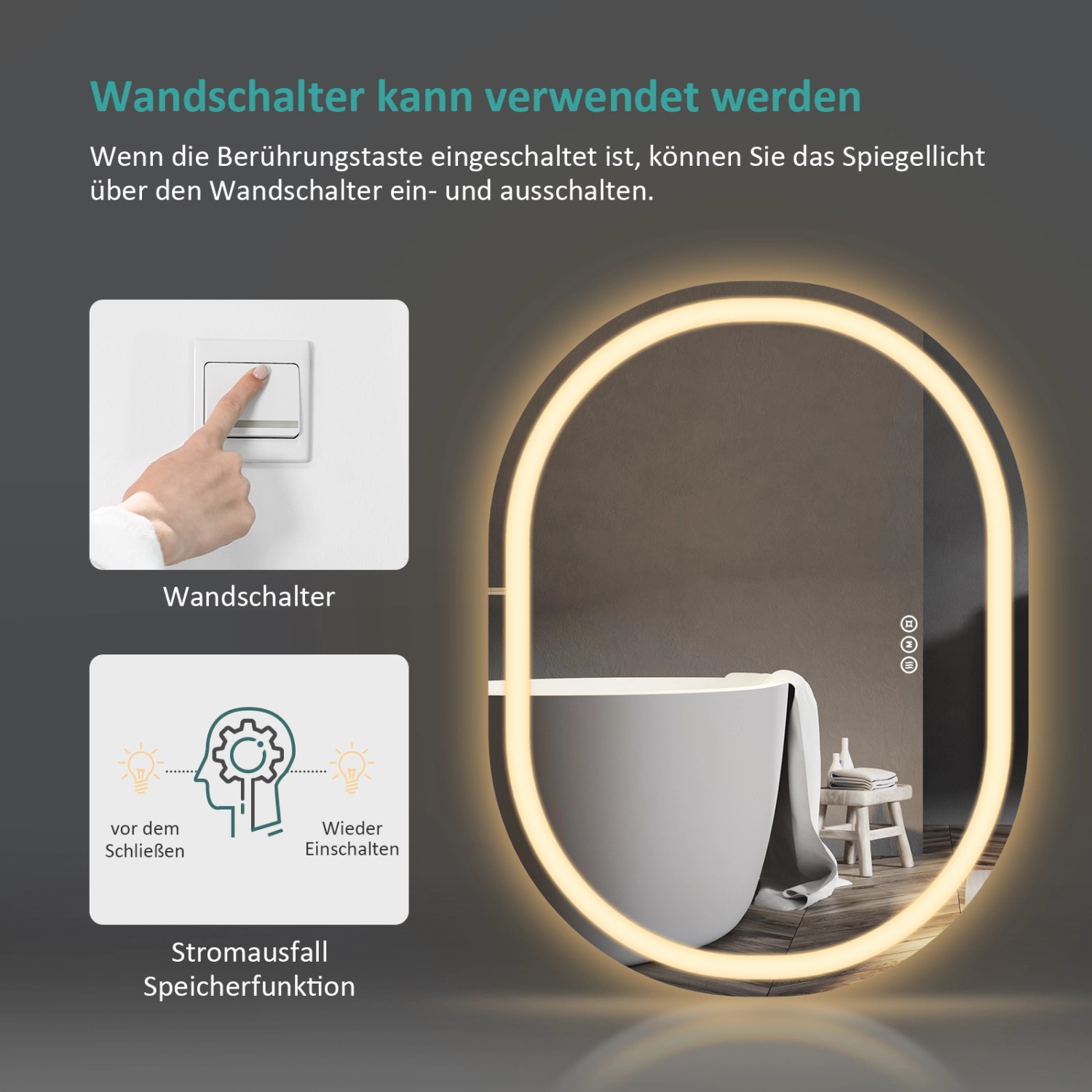 LED Badezimmerspiegel Oval 70x45cm - Dimmbar & Beschlagfrei