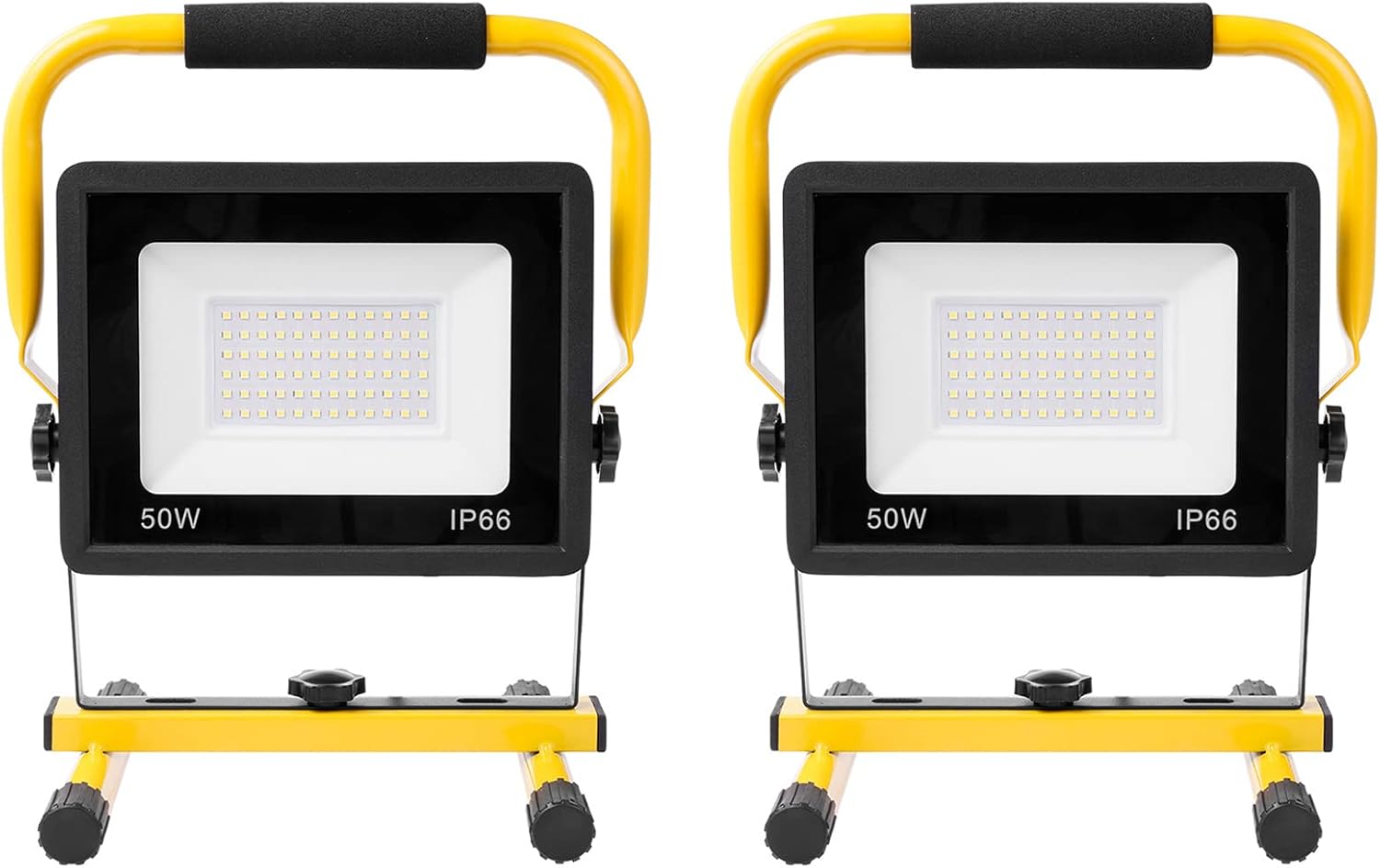 50W LED Baustrahler Mit Stativ - 5000LM Arbeitsleuchte IP66 Wasserdicht