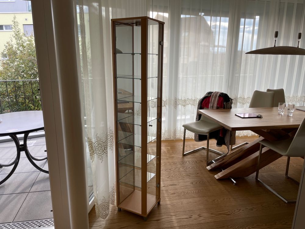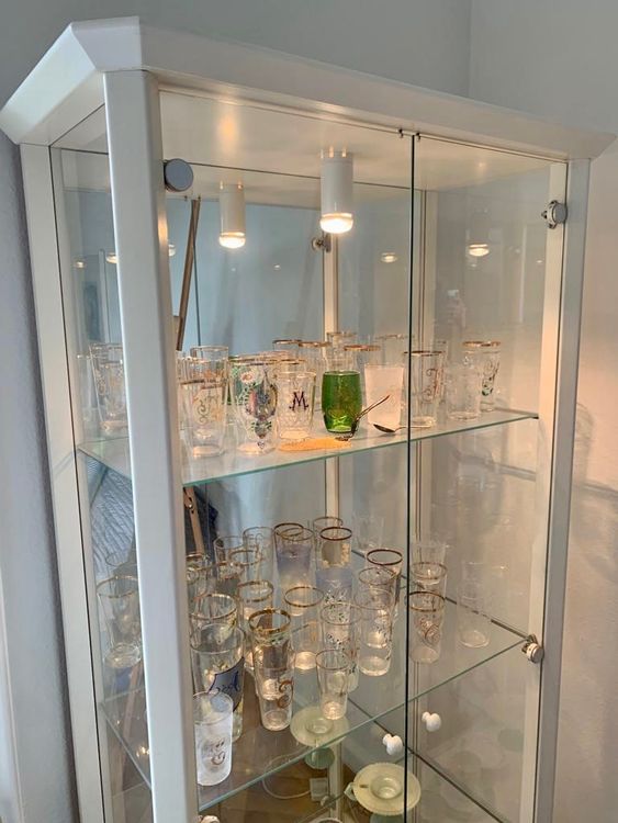 LANTRO JS Glasvitrine Mit LED-Beleuchtung - 160 Cm Hoher Schaukasten In Eiche Optik