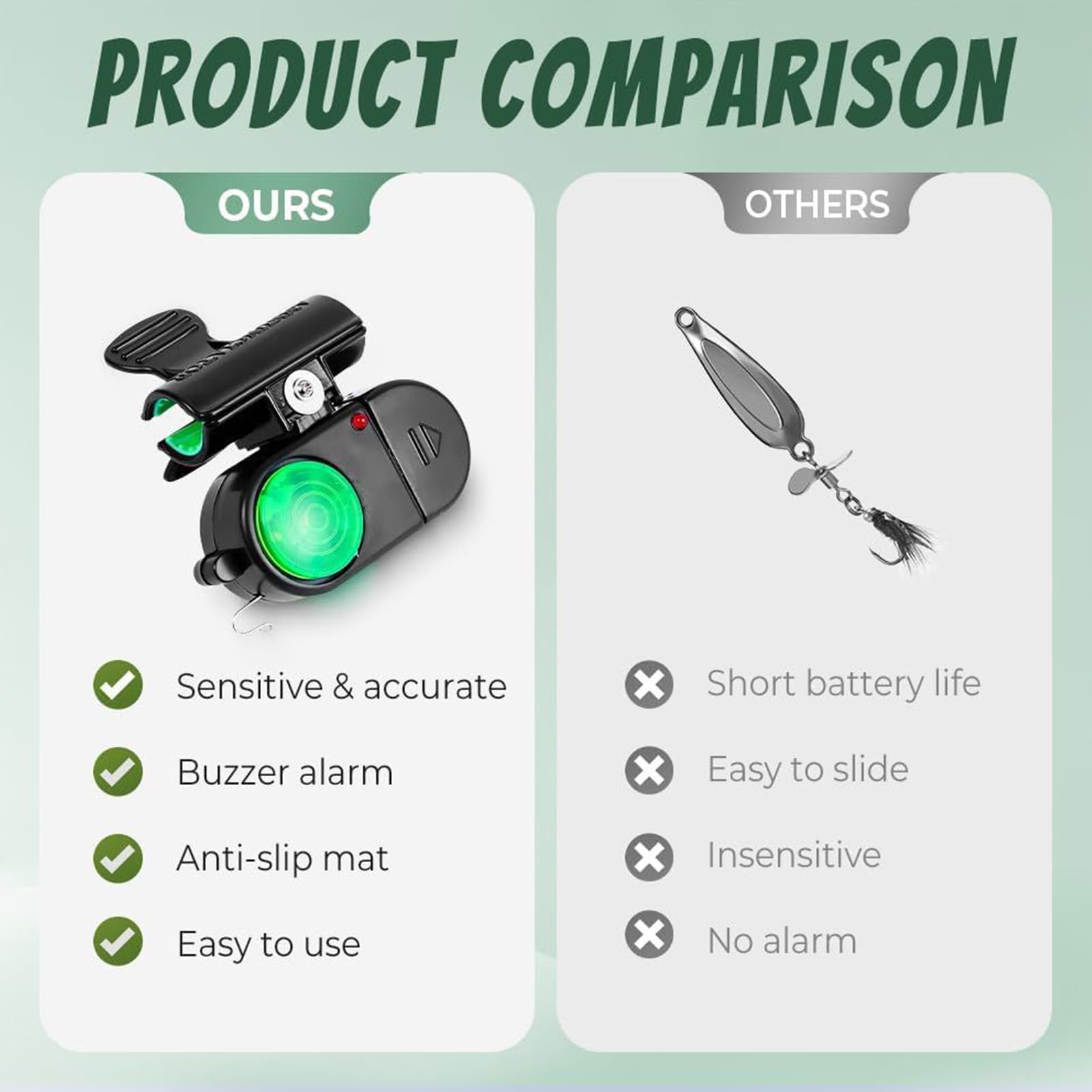 Hey Angler, diese Glocken machen das Fischen noch entspannter! Das 2er-Set mit LED-Beleuchtung und Sound-Alarm zeigt jeden Biss zuverlässig an - egal bei welchem Wetter. Mit Winkelsensor-Technologie und einstellbarer Empfindlichkeit filtert es Fehlalarme heraus. Der elastische Clip passt an fast jede Angelrute. Aus stoßfestem PP und Metall - hält auch salzigem Meerwasser stand. Ca. 6,5x6,5 cm groß und 45 g schwer - kompakt und praktisch. Ideal für Mehrfachruten-Angeln. Ob am See, Fluss oder Meer - mit diesen Glocken verpasst du keinen Fisch mehr. Perfekt als Geschenk für Angel-Einsteiger oder erfahrene Fischer. Einfach anschnallen, Empfindlichkeit einstellen und entspannt auf den nächsten Biss warten!