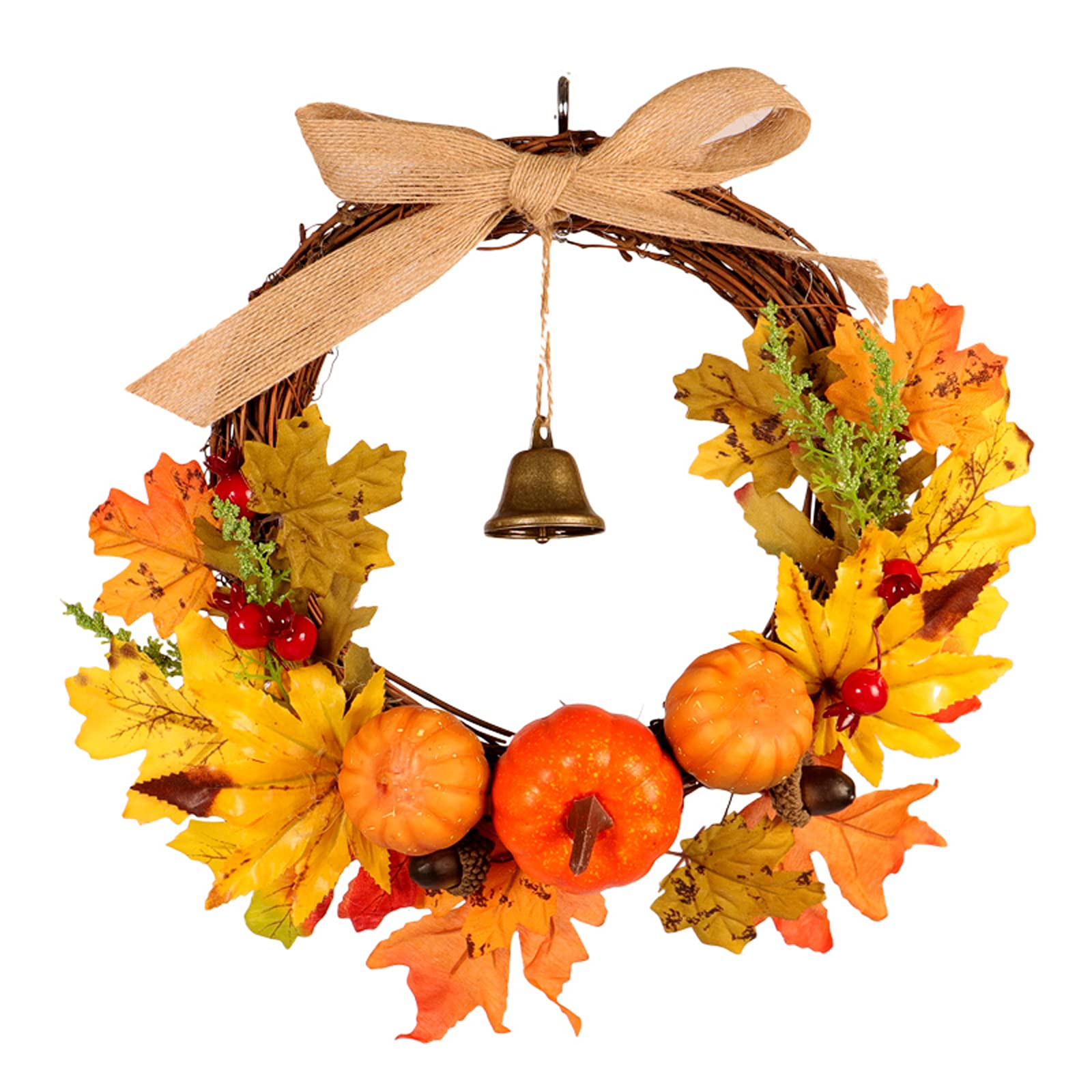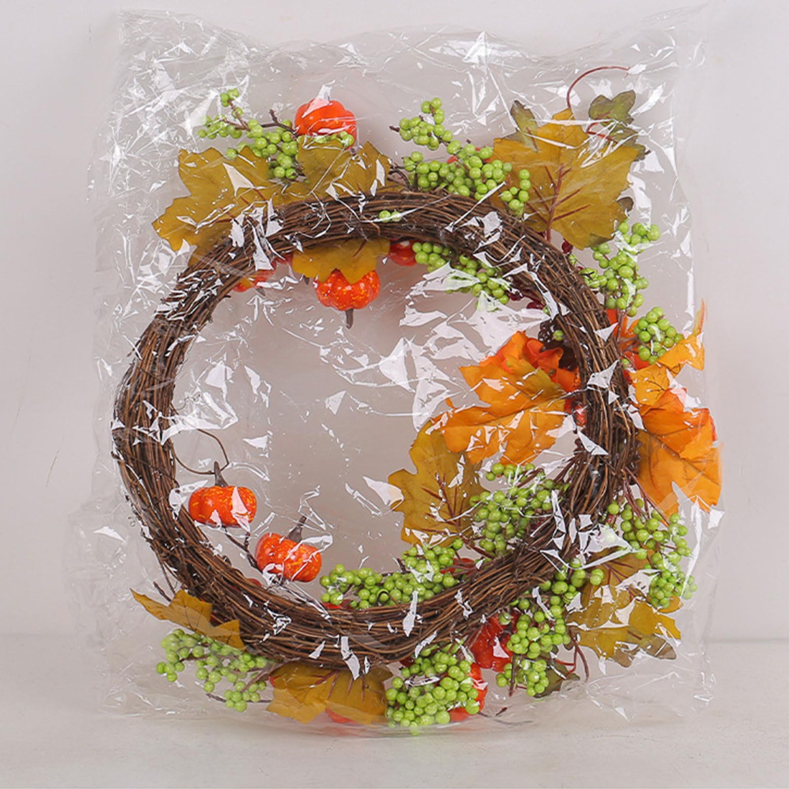 Herbstkranz Mit LED-Beleuchtung - 45cm Türkranz Mit Kürbissen & Ahornblättern Für Halloween