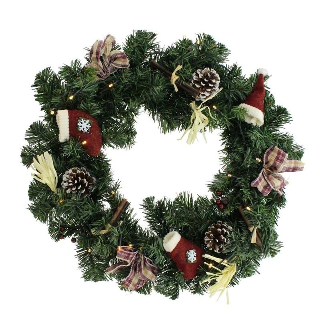 Bring weihnachtliche Stimmung in dein Zuhause! Dieser wunderschöne Weihnachtskranz mit LED-Beleuchtung verbreitet sofort festliche Atmosphäre. Mit ca. 30x40 cm Größe ist er perfekt für Türen, Wände oder den Kamin. Der Kranz besteht aus samtenem Material und ist dekoriert mit lebensechten Tannenzapfen, roten Beeren und winterlichen Zweigen. Die integrierte LED-Beleuchtung lässt den Kranz im warmen Glanz erstrahlen und sorgt für gemütliches Ambiente. Mit vormontiertem Aufhänger einfach und ohne Werkzeug zu befestigen - ob innen oder außen. Das landhausinspirierte Design passt perfekt zu Weihnachten, Winterhochzeiten oder festlichen Anlässen. Ob an der Haustür, am Fenster, über dem Kamin oder als Tischdekoration - dieser Kranz ist ein echter Hingucker! Hochwertige Materialien garantieren, dass der Kranz die gesamte Weihnachtszeit über in bestem Zustand bleibt. Einfach aufhängen, LED einschalten und dich am festlichen Glanz erfreuen. So schaffst du im Handumdrehen weihnachtliche Gemütlichkeit und empfängst deine Gäste mit festlichem Flair!