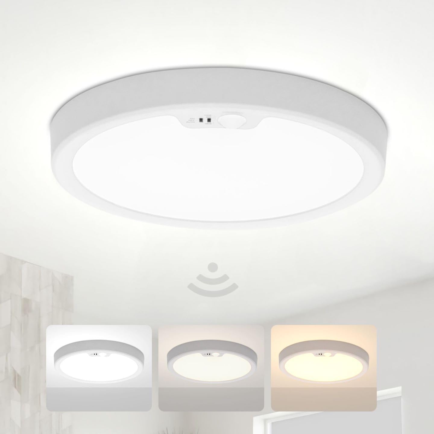 Diese intelligente LED-Deckenleuchte mit Bewegungsmelder macht das Leben so viel einfacher! Mit 18W Leistung und 1350 Lumen strahlt sie helles, warmweißes Licht (3000K) aus. Der Sensor erkennt Bewegungen bis zu 4m Entfernung und schaltet das Licht automatisch ein.