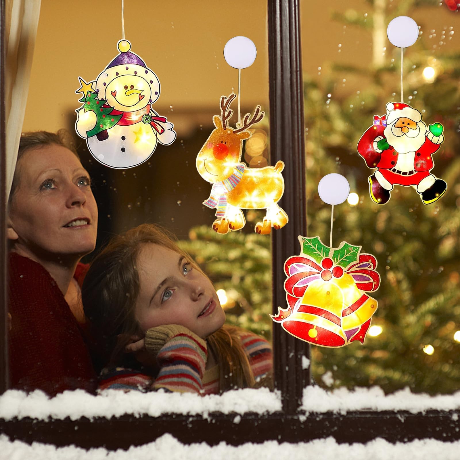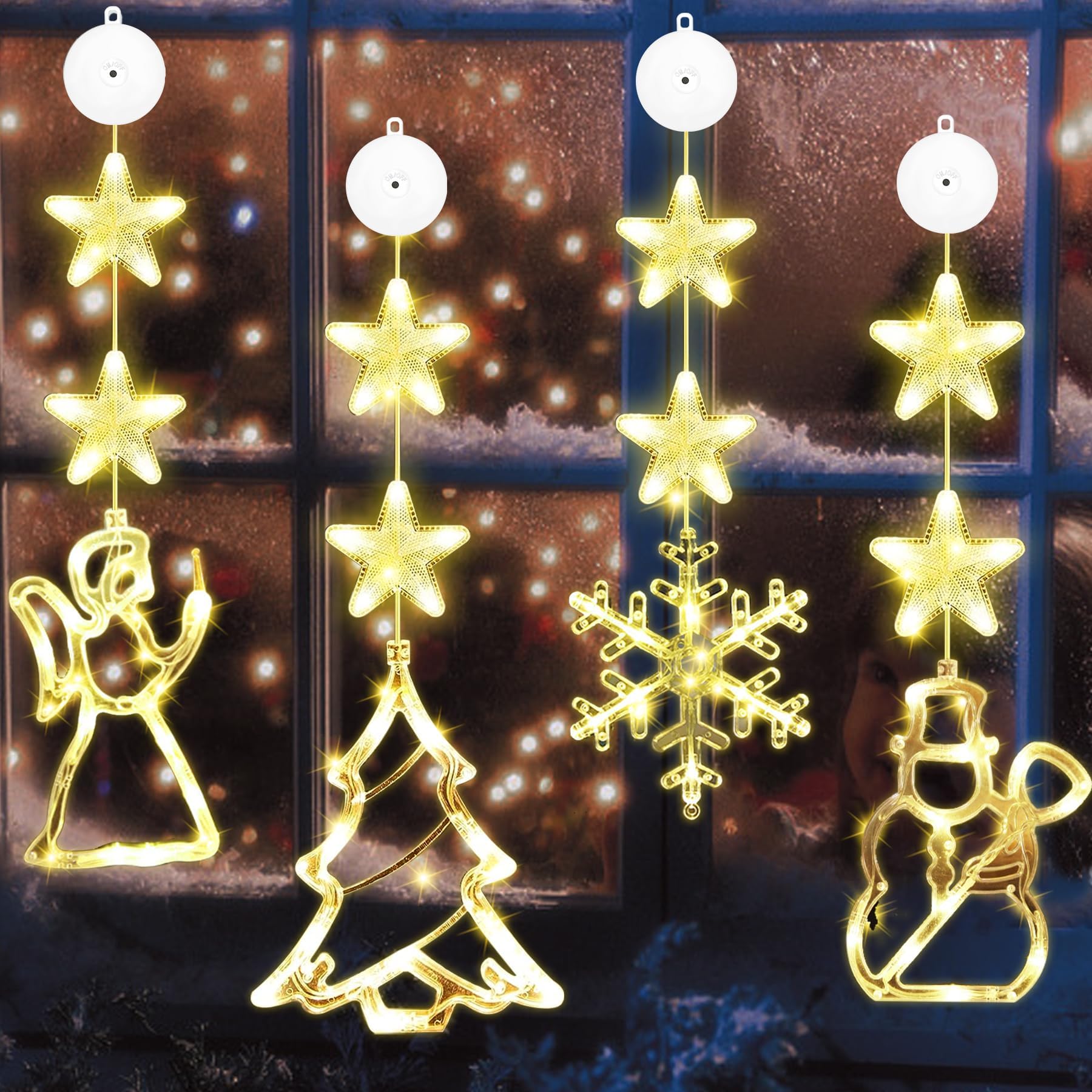 4x LED Fensterlichter Mit Saugnapf - Weihnachtsbeleuchtung Batterie
