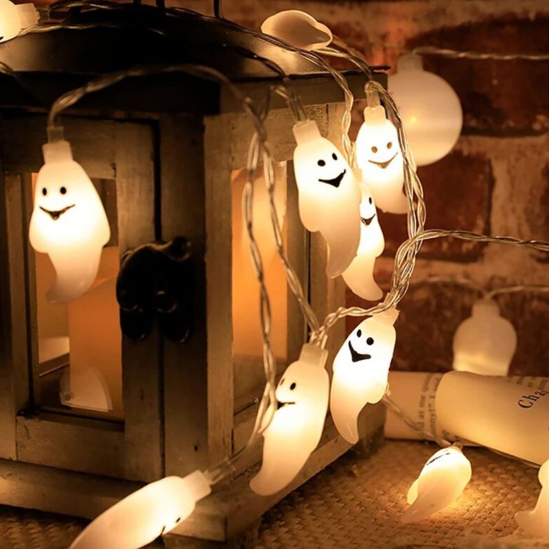 LED Geister Lichterkette - 198cm Batteriebetrieb Gruseldekoration