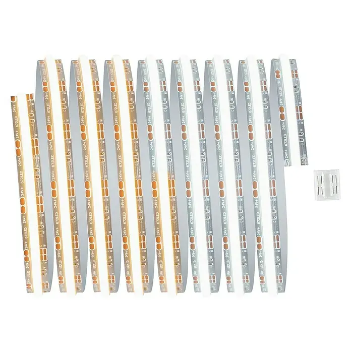 Für alle Licht-Profis und Kreativen: Der Paulmann MaxLED Strip ist Premium-Qualität pur! Mit bis zu 144W Leistung und COB-Technologie liefert er ultra-gleichmäßiges, helles Licht ohne störende Lichtpunkte. RGBW bedeutet: Du hast volle Farbkontrolle plus warmweißes Licht in einem! Perfekt für anspruchsvolle Beleuchtungslösungen in Wohnräumen, Geschäften oder Ausstellungen. Das MaxLED-System ist super flexibel - mit 90° Connectoren kannst du auch um Ecken verlegen, ohne dass das Licht abbricht. Einfache Installation mit Klebeband, erweiterbar mit Paulmanns riesigem Zubehör-Sortiment: Profile, Verbinder, Steuerungen - alles da! Ob als indirekte Beleuchtung, Stimmungslicht oder zur kompletten Raumausleuchtung - dieser Strip macht alles mit. Die transparenten COB-Ecken passen sowohl links als auch rechts - maximale Flexibilität bei der Installation! Integriere ihn einfach in deine bestehende Lichtplanung oder starte ein komplett neues Projekt. Paulmann Qualität made in Germany - da weißt du, was du hast! Für alle, die nicht nur irgendein Licht wollen, sondern das perfekte Licht!