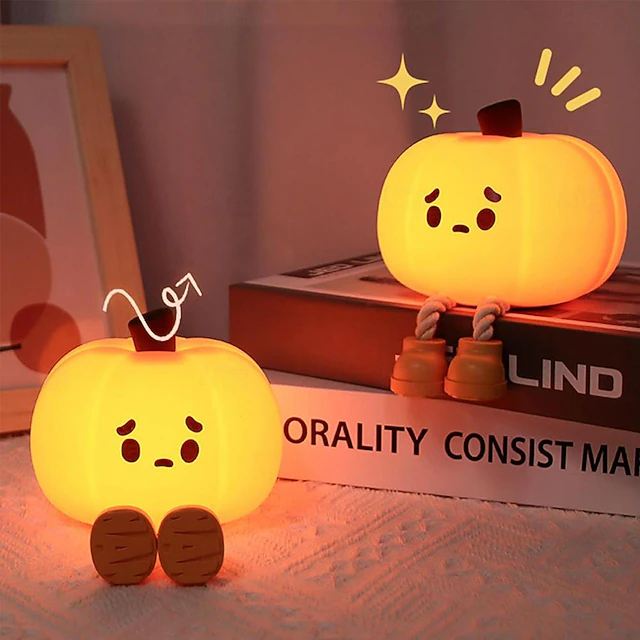 Halloween Kürbis Nachtlicht - Dimmbare LED Lampe Mit Timer, 30min Auto-Ausschaltung