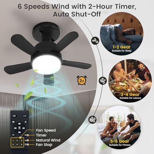 HIAME Deckenventilator Mit LED Licht & Bluetooth - RGB Farben, Fernbedienung, 50cm