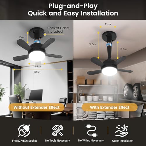 Vierfach-Glück für dein Zuhause! Dieser coole Deckenventilator kombiniert Beleuchtung, Lüftung, Musik und Stimmungslicht in einem. Die LED-Leuchte bietet 3 Farbtemperaturen von gemütlich-warm bis tageslicht-klar. Mit RGB-Lichtshow und Musik-Sync tanzen die Lichter zu deinen Lieblingssongs. Drei Geschwindigkeitsstufen sorgen für perfekte Brise - ob sanft zum Einschlafen oder kräftig an heißen Tagen. Bluetooth-Lautsprecher spielt Musik von deinem Phone. Einfach in E27-Fassung schrauben - fertig! Timer und Schlafmodus machen's komplett. Perfekt für Wohnzimmer, Schlafzimmer oder Kinderzimmer. Style und Funktion in einem!