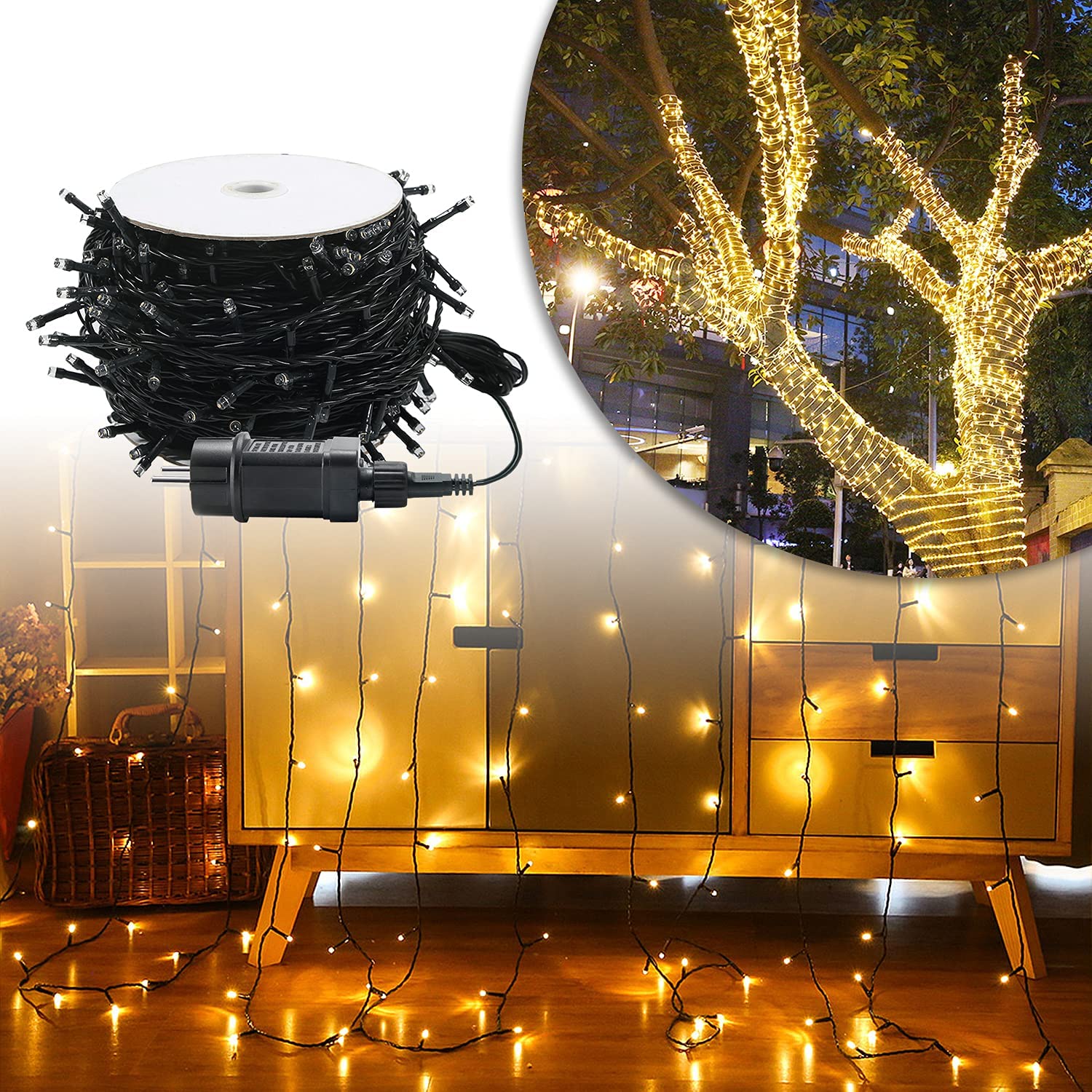 1000 LED Lichterkette 100m - IP44 Wasserdicht Mit 8 Modi Warmweiß