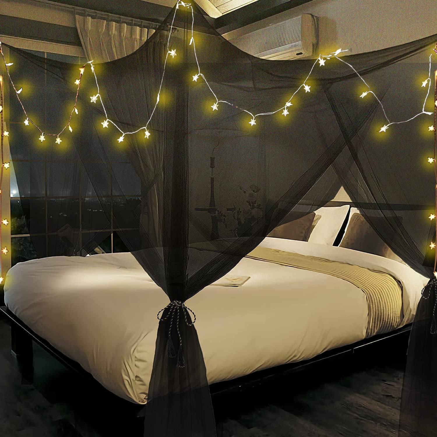 Anmas Moskitonetz Mit LED-Lichterkette - Baldachin Für Doppelbett