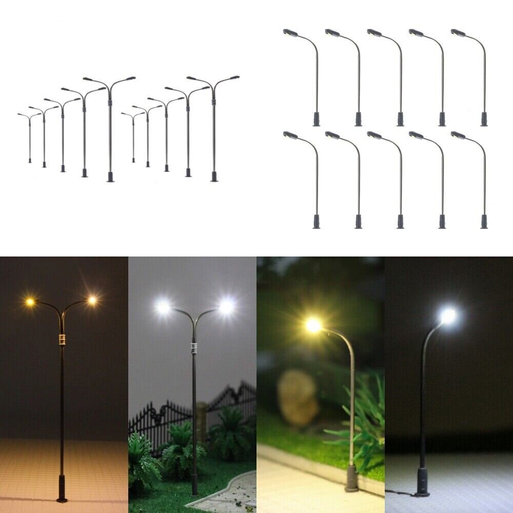 10er Set LED Straßenlaternen Für Modelleisenbahn - Weiße Lampenpfosten Für Modellbau