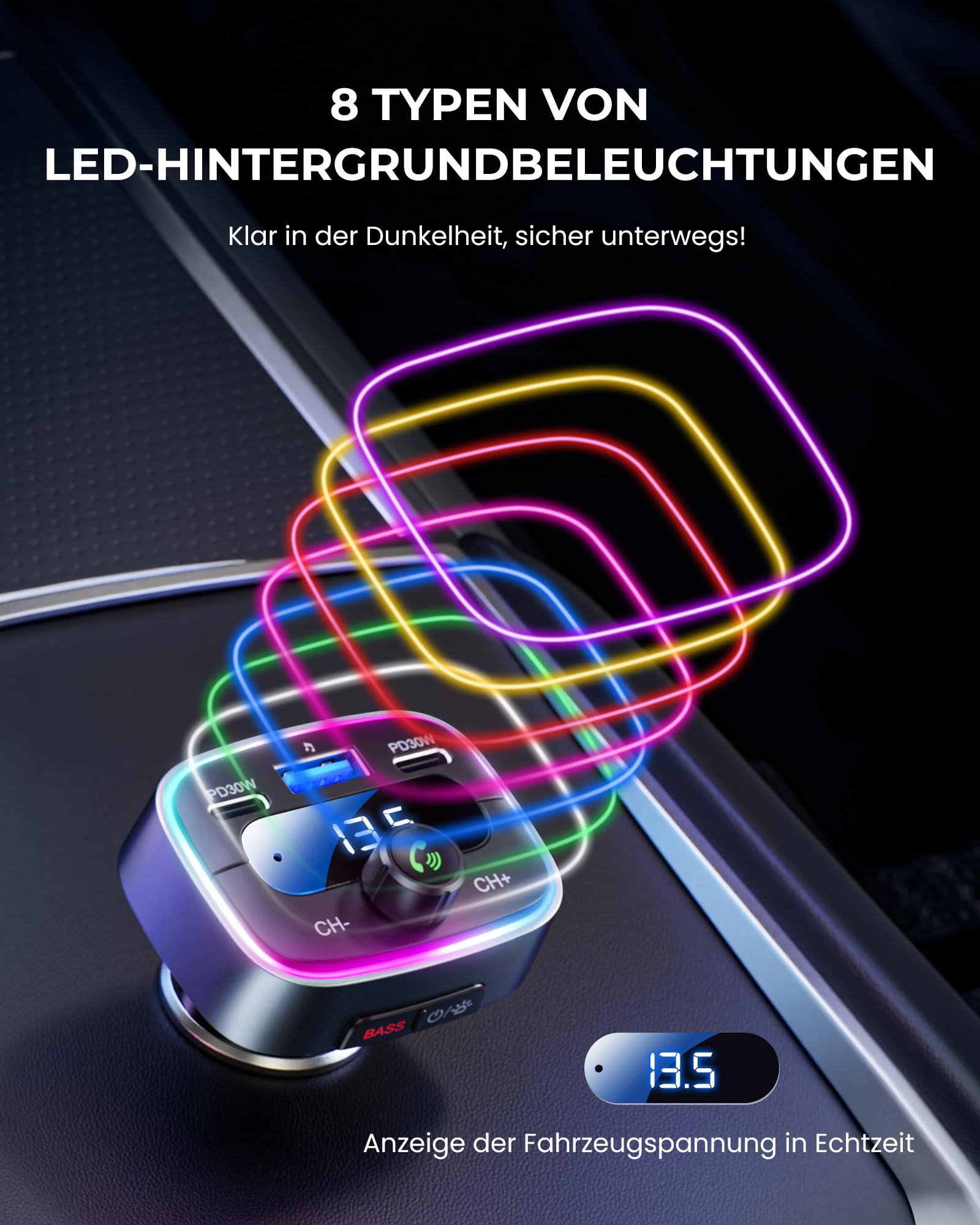 LENCENT Bluetooth 5.4 FM Transmitter - Dein Smarter Auto-Begleiter Mit 60W Schnellladung & Kristallklarem Sound
