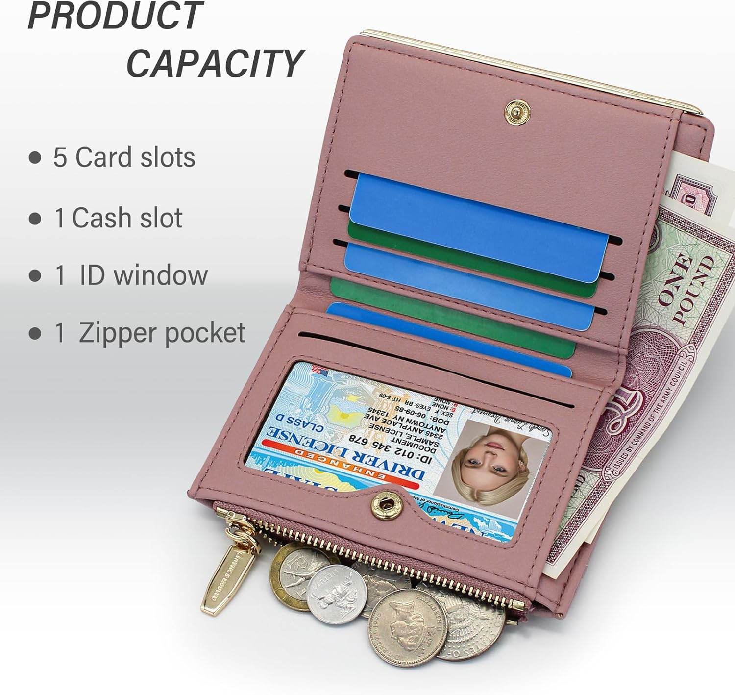 LEOEZYA Damen Geldbörse Mini - PU Leder Portemonnaie | Mit Münzfach & Kussverschluss | Rosa