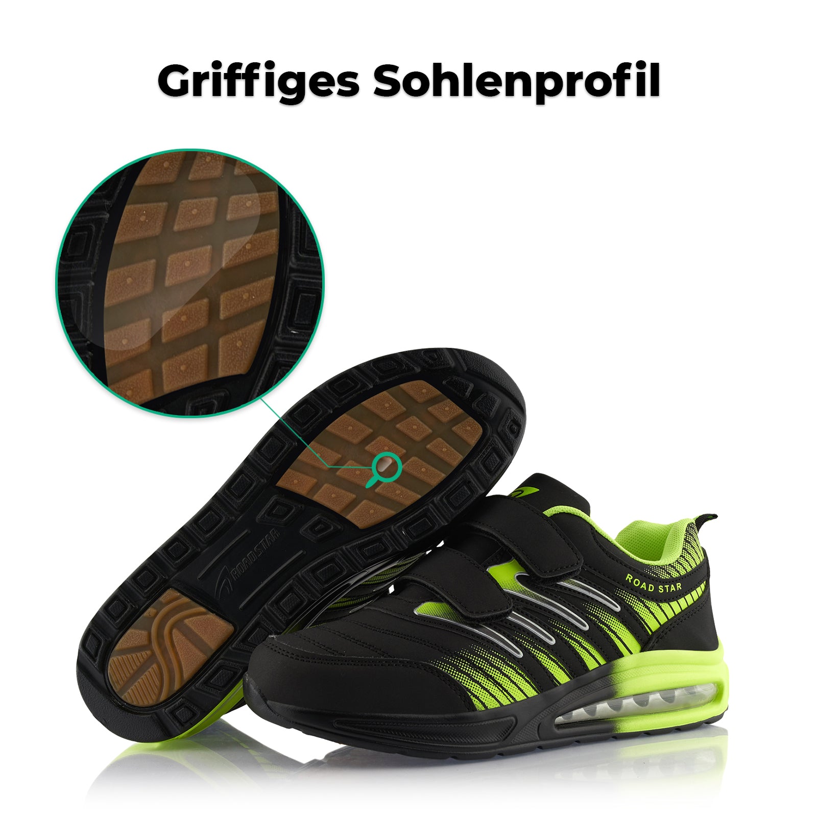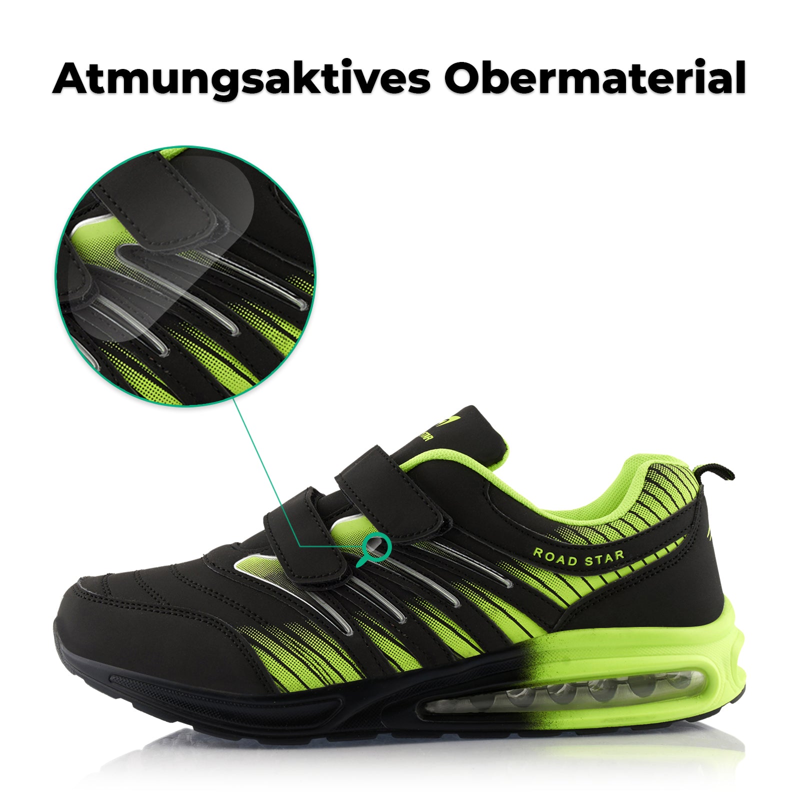 Diese Sneaker sind einfach der Hammer! Mit praktischem Klettverschluss - kein lästiges Binden mehr. Die dicken Gummisohlen federn jeden Schritt super ab und die ergonomische Einlage gibt deinen Füßen den richtigen Halt. Perfekt nicht nur für Sport, sondern auch für den Alltag. Atmungsaktiv, leicht und mit gutem Grip - was will man mehr? Obermaterial: Kunstleder • Sohle: Abriebfester Gummi • Besonderheiten: Klettverschluss, orthopädische Einlage • Für: Laufen, Fitness, Wandern, Alltag