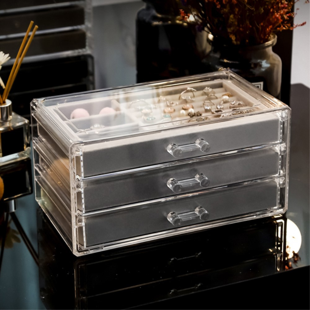 LETURE 3-lagige Schmuck-Box - Transparenter Acryl-Organizer Für Ohrringe, Ringe & Ketten