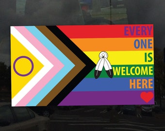 LGBTQ Regenbogen Aufkleber - Progress Pride Banner Everyone Is Welcome Here