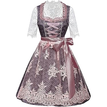 Oktoberfest-Feeling pur mit diesem wunderschönen 3-teiligen Dirndl-Set von LINUCKER! Das frische Design in Weiß und Lila mit Avocado-grünen Akzenten und Paisley-Muster bringt modernen Schwung in die traditionelle Tracht. Mit herzförmigem Ausschnitt und romantischen Rüschenborten siehst du einfach umwerfend aus. Das Komplett-Set enthält alles, was du brauchst: Dirndl, Bluse und Schürze - einfach anziehen und losfeiern! Aus 100% Baumwolle fühlt sich das Dirndl natürlich atmungsaktiv und super bequem an. Der Reißverschluss und die verstellbare Schnürung in Avocado-Grün sorgen für perfekte Passform. Die trägerlose Bluse mit verstellbarem Bund passt sich deiner Figur optimal an. Perfekt fürs Münchner Oktoberfest, bayrische Feste oder einfach für alle, die Trachtenmode lieben. Damit wirst du garantiert zum Blickfang auf jedem Fest!