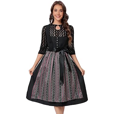 LINUCKER Dirndl Damen 3-teilig Komplett-Set - Midi Trachtenkleid Für Oktoberfest Mit Bluse & Schürze