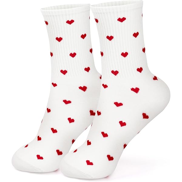 Wie süß sind denn diese Socken? 3 Paar mit rot-weißen Herzen - einfach niedlich! Aus weicher Baumwolle, super bequem zu tragen. Größe 36-40, also für die meisten Damenfüße perfekt. Bunddurchmesser 7cm, Ferse 13cm, Fußlänge 14cm. Perfekt als Tennissocken, aber auch für den Alltag oder als gemütliche Kuschelsocken. Das elastische Material passt sich super an. Macht ein tolles Geschenk für die beste Freundin, zum Valentinstag oder einfach so. Sieht unter Sneakern oder Stiefeln super aus! Einfach anziehen und sich über die fröhlichen Herzen freuen!