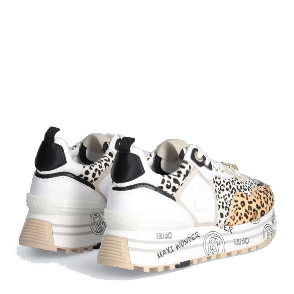 LIU JO Damen Sneakers Aus Leder - Weiß Mit Keilabsatz