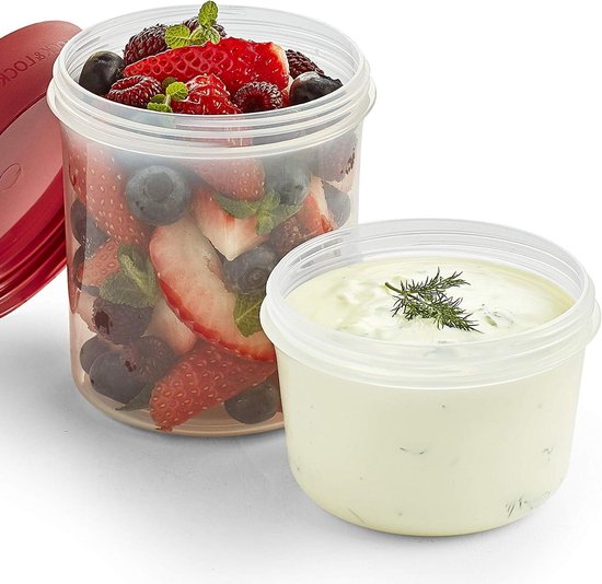 Perfekt fürs Frühstück to go! Dieser geniale TWO-WAY Behälter von LOCK & LOCK hält dein Müsli und Toppings getrennt - so wird nichts matschig! Oben kommen die trockenen Sachen wie Müsli, Nüsse oder Früchte rein, unten der Joghurt oder Quark. Mit Schraubdeckel absolut auslaufsicher - wirf ihn einfach in deine Tasche! Aus BPA-freiem Kunststoff, spülmaschinenfest und sogar mikrowellengeeignet. Die Maße von 105x99x140mm passen in jede Tasche. Super auch für Salate mit Dressing, Nüsse oder kleine Snacks. Macht das Frühstück im Büro, in der Schule oder unterwegs zum echten Genuss - alles bleibt frisch und knusprig! Einfach clever und praktisch!
