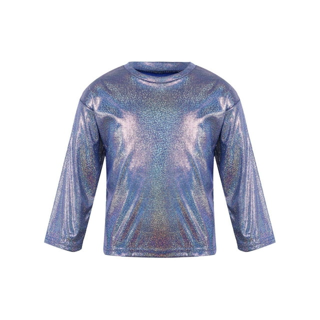 LOLANTA Mädchen Crop Top - Glitzerndes Tanzoberteil Mit Metallic-Ärmeln