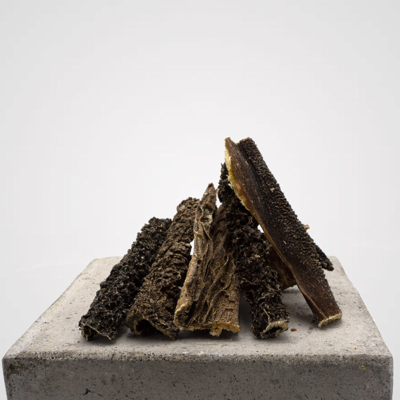 Dein Hund liebt Kauartikel? Diese Wildhaut-Snacks sind genau das Richtige! Aus 100% reiner Wildhaut ohne irgendwelche Zusätze - komplett natürlich und gesund. Perfekt für die Zahnreinigung - beim Kauen werden Zähne und Zahnfleisch massiert, Plaque entfernt und der Atem frischer. Weil's Wild ist, ist es besonders mager und kalorienarm - ideal für Hunde, die auf ihre Linie achten müssen. Und für Allergiker-Hunde super geeignet, da Wild ein seltenes Protein ist. Die Snacks halten lange - dein Hund hat stundenlang Beschäftigung. Luftgetrocknet damit alle Nährstoffe erhalten bleiben. Ethisch einwandfrei aus vertrauenswürdiger Quelle. Einfach ein gesunder Snack, den Hunde lieben - ob Welpe oder Senior, klein oder groß!