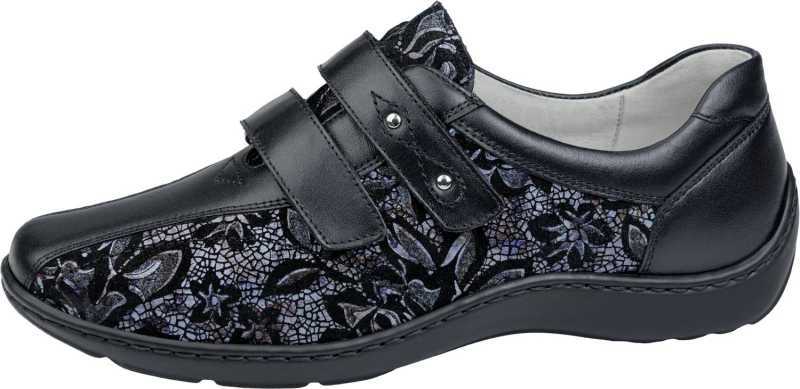So bequem können Ballerinas sein! Der Waldläufer Henni in schickem Schwarz kombiniert Style mit maximalem Komfort. Aus weichem Lackleder gefertigt, das sich super an den Fuß anpasst. Der praktische Klettverschluss macht das Anziehen zum Kinderspiel und sorgt für perfekten Halt. Besonders toll: Das herausnehmbare PRO-Aktiv Fußbett das deine Füße mit einer leichten Massagewirkung verwöhnt. Perfekt wenn du eigene Einlagen tragen musst! In Weite H gibt's genug Platz für alle Fußformen. Die ultraleichte PU-Laufsohle federt jeden Schritt angenehm ab. Ob im Büro, auf der Stadt oder unterwegs - diese Schuhe begleiten dich den ganzen Tag ohne zu drücken. Sie sehen nicht nur gut aus, sondern fühlen sich auch noch fantastisch an! Ein echter Allrounder für anspruchsvolle Füße!