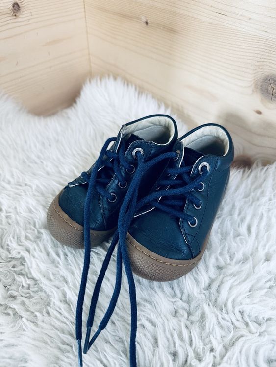 Die ersten Schuhe für dein Kind sollten perfekt sitzen! Diese Lauflernschuhe von Naturino sind speziell für kleine Füße entwickelt. Hergestellt aus weichem Lackleder, das sich optimal an den Fuß anpasst und genug Bewegungsfreiheit lässt. Die strukturierte Ferse gibt Halt, während die dehnbaren Lurex-Schnürsenkel für den perfekten Sitz sorgen. Innen alles aus weichem Leder - das ist nicht nur angenehm für die Haut, sondern lässt die Füße auch atmen. Die Gummisohle ist flexibel aber dennoch robust genug, um die ersten Schritte optimal zu unterstützen. Die verstärkte Spitze schützt die kleinen Zehen vor Stößen. Niedliche Verzierungen mit konturierten und perforierten Kanten machen diese Schuhe zu echten Hinguckern. Dein Kind läuft sicher und bequem, während die Füße sich natürlich entwickeln können. Perfekt für drinnen und draußen, ob in der Krippe, beim Spielen oder auf dem Spielplatz. Qualität, die man sieht und fühlt! Investiere in die gesunde Entwicklung deines Kindes mit Schuhen, die wirklich passen.